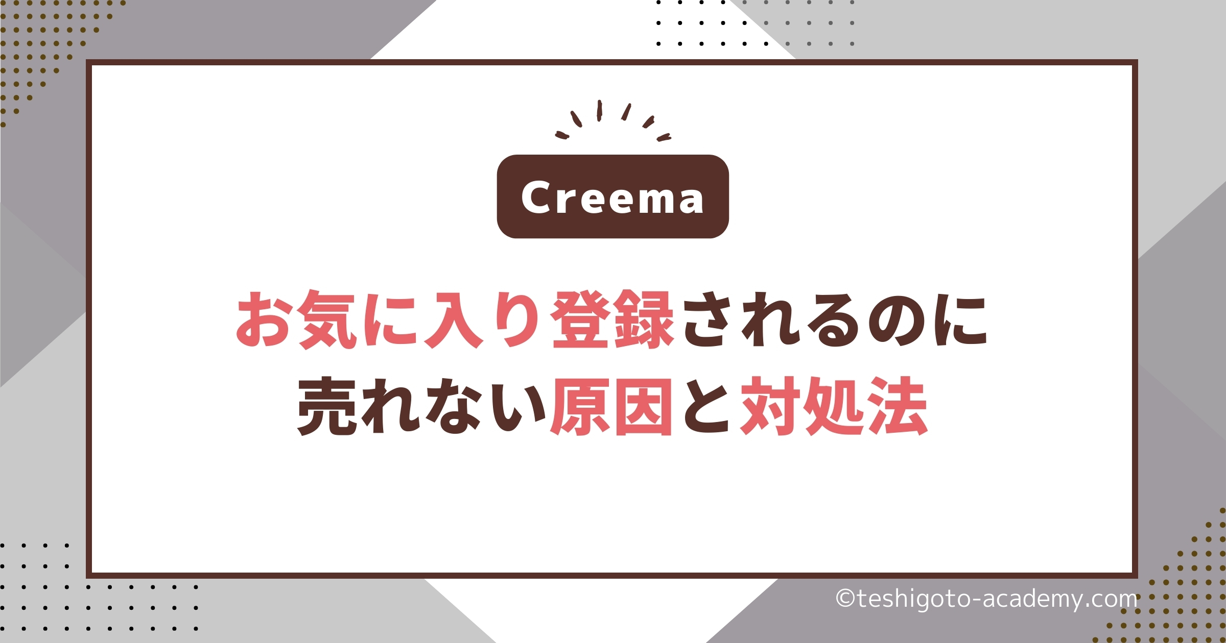 この記事では、そんなお悩みを持っているハンドメイド作家さんに向けて、お気に入りに登録されても売れない原因と「対策方法」をお伝えしてみようと思います。
